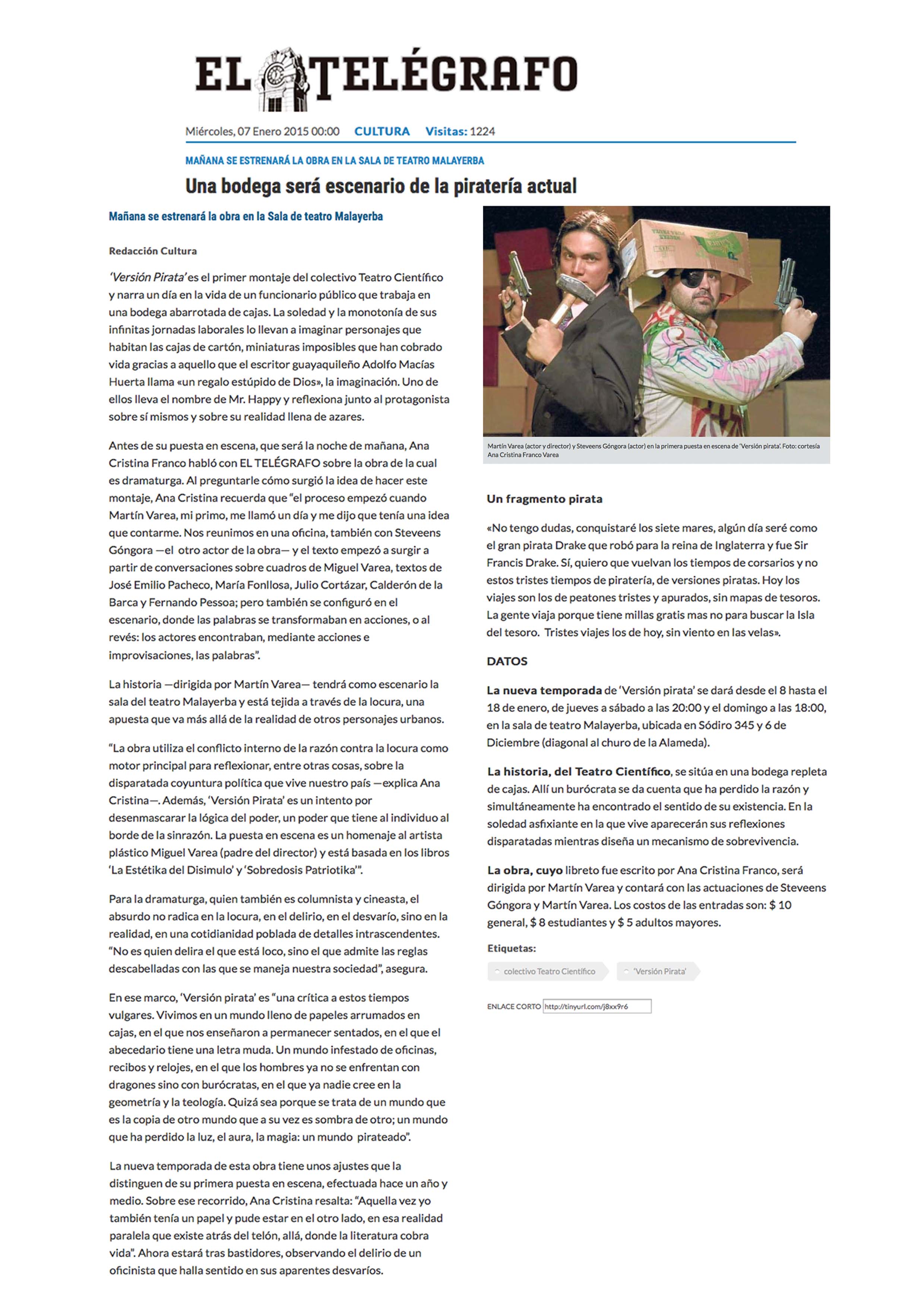 PRENSA EL TELEGRAFO - TEATRO CIENTÍFIKO